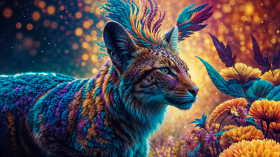 A Fantastic Lynx Adorned with Colorful and Fascinating Flowers